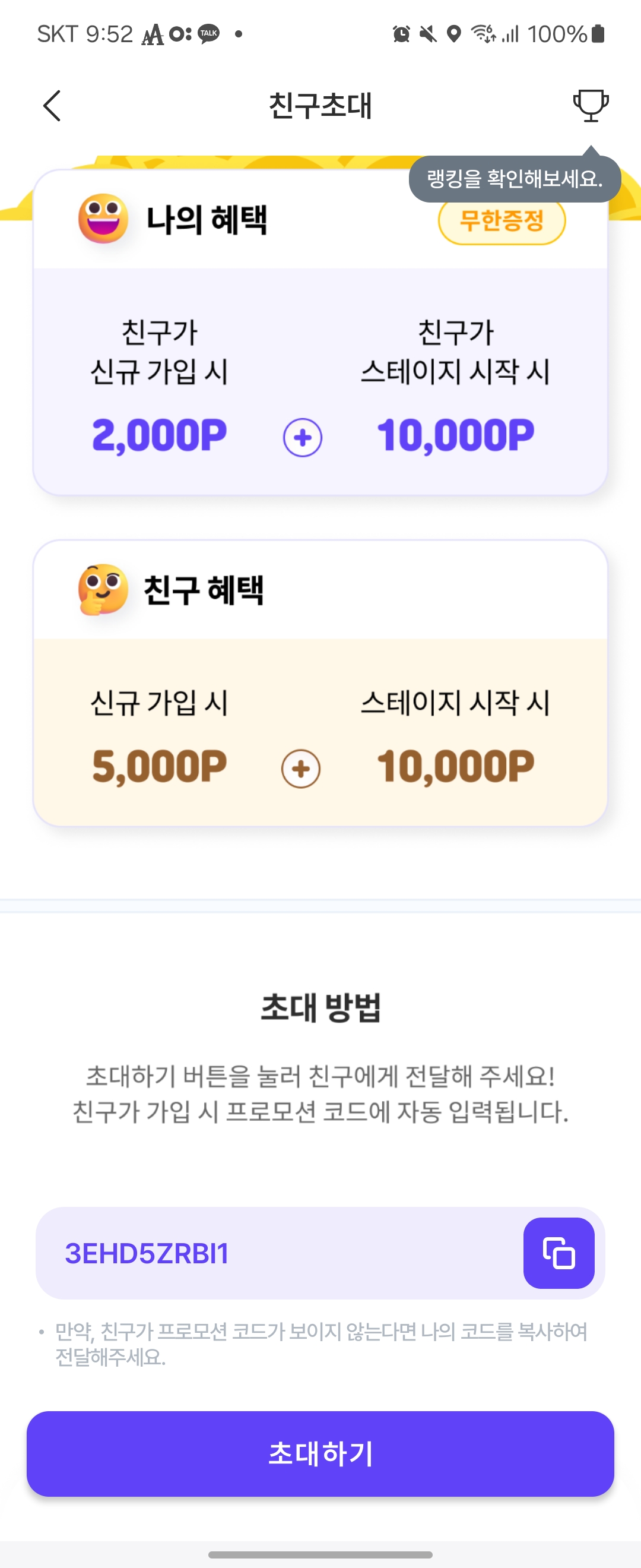 아니면 다른 분들이 현상금 내걸었듯이 여러분들도 혜택으로 다른 분 드릴 수 있습니다. 내가 1등이면 빨리빨리 자리가 채워져야 돈을 받을 수 있잖아요. 같은 금액 스테이지라도 현상금이 많~이 걸려있으면 확률이 높겠죠.