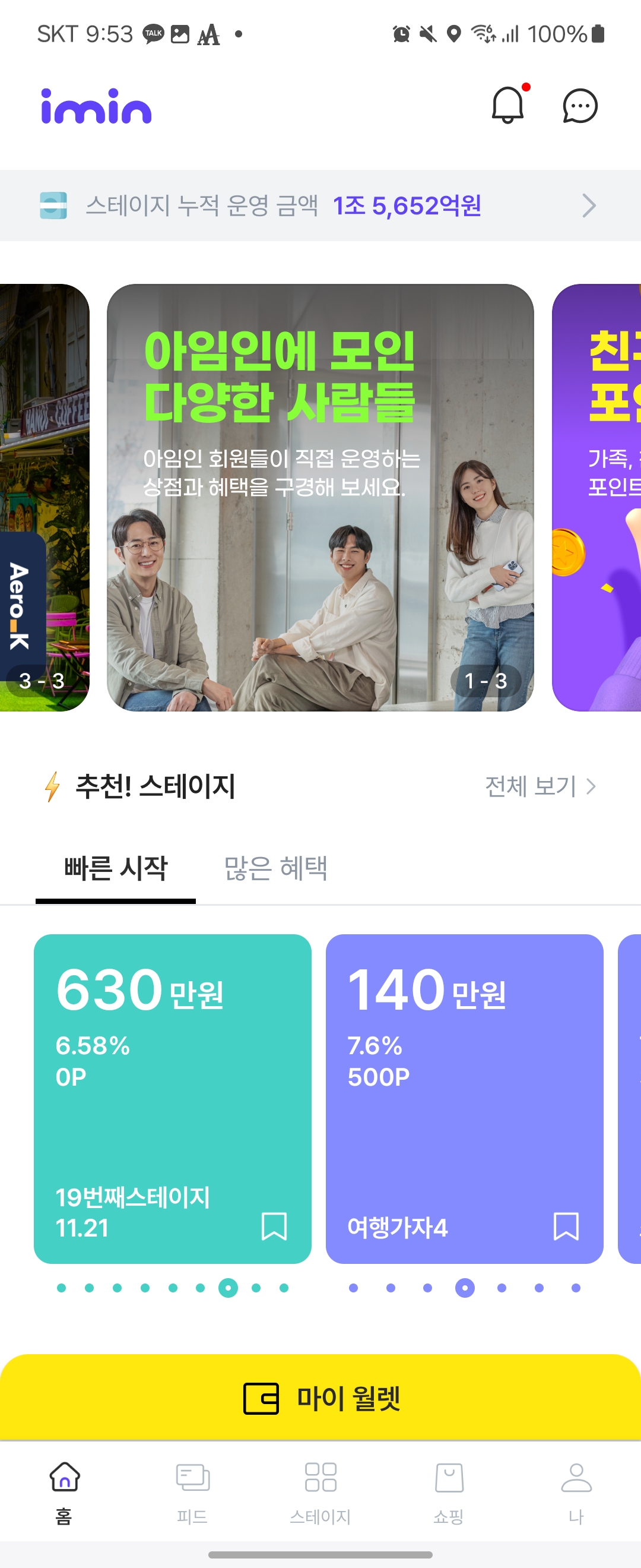 스테이지 참여할 때 적용할 수 있는데 자그마치 1:1 비율로 현금처럼 사용할 수 있어요. 님이 순번에 따라 정해진 내놔야 할 돈 100만원이나 97만원에서 깎아준다는 뜻이여요. 핵이득 ㅎㅎㅎ 심지어 추천인 코드를 넣고 스테이지 시작하면 만 포인트를 더준다네요. 이 포인트로는 1만원 쿠폰 사셔서 두 번째 스테이지 참가하실 때 쓰시면 되시겠죠? 그리고 마침 스크린샷 밑에 '월렛'이란 단어도 나오겠다 노파심에 말씀드리는 건데 본인이 돈 낼때 은행으로 입금했다고(자동이체 안되고 직접 이체해야돼요. 3일 시간 주긴하지만 지나면 연체료 비싸요! 주의주의! 그냥 정해진 날짜 기다리지말고 3일 전부터 입금 가능하다고 카톡 오는데 그때 넣는 걸 추천) 자기 계좌번호로 돈 바로 들어오는 거 아니에요! 중요중요 밑줄쫙! 아임인 어플 내에 있는 월렛으로 넣어줘요. 월렛에 넣어놓으면 연 3.6%로 포인트를 준다는데 그냥 바로 출금하시는 것 추천! 소액만 쌓이는 팍팍한 앱테크 부업 생활에 이런 목돈 단비가 가끔 있어줘야쥬.